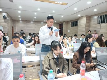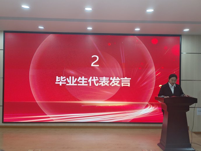 紧接着,毕业生代表王航发言,她深情回忆大学四年的美好时光,并对母校、恩师和同学表达感谢与祝愿。教师代表李艳寄语毕业生,勉励同学们坚定理想信念,不怕困难勇往直前,并祝福全体毕业生一帆风顺、前程似锦。
