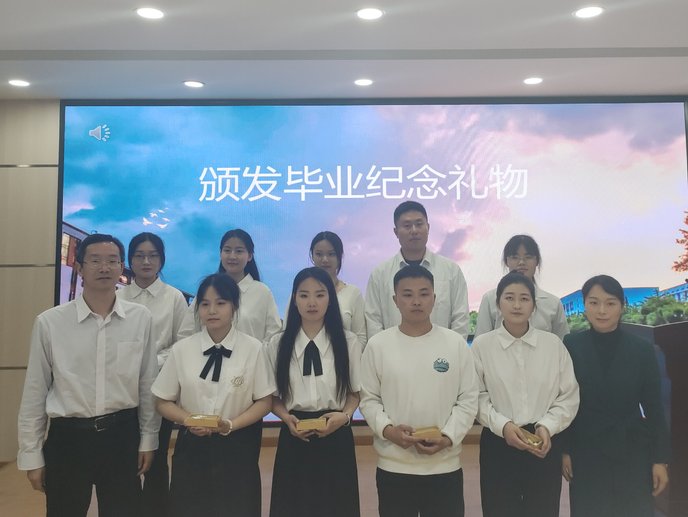 党委副书记张文静和副经理王任傅为各班毕业生代表颁发毕业纪念品,希望毕业生用心记录和收藏老员工活中的各种美好。