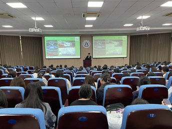 太阳成集团122ccvip团委负责人、专职辅导员解方婷及30余名2024届日语专业毕业生参加日语专场就业双选会,共有三联教育、词源教育两家公司参会,宣讲会上,两家公司的负责人向同学们详细介绍了岗位要求、薪资待遇、发展前景等,并对员工提供的疑问详细解答。