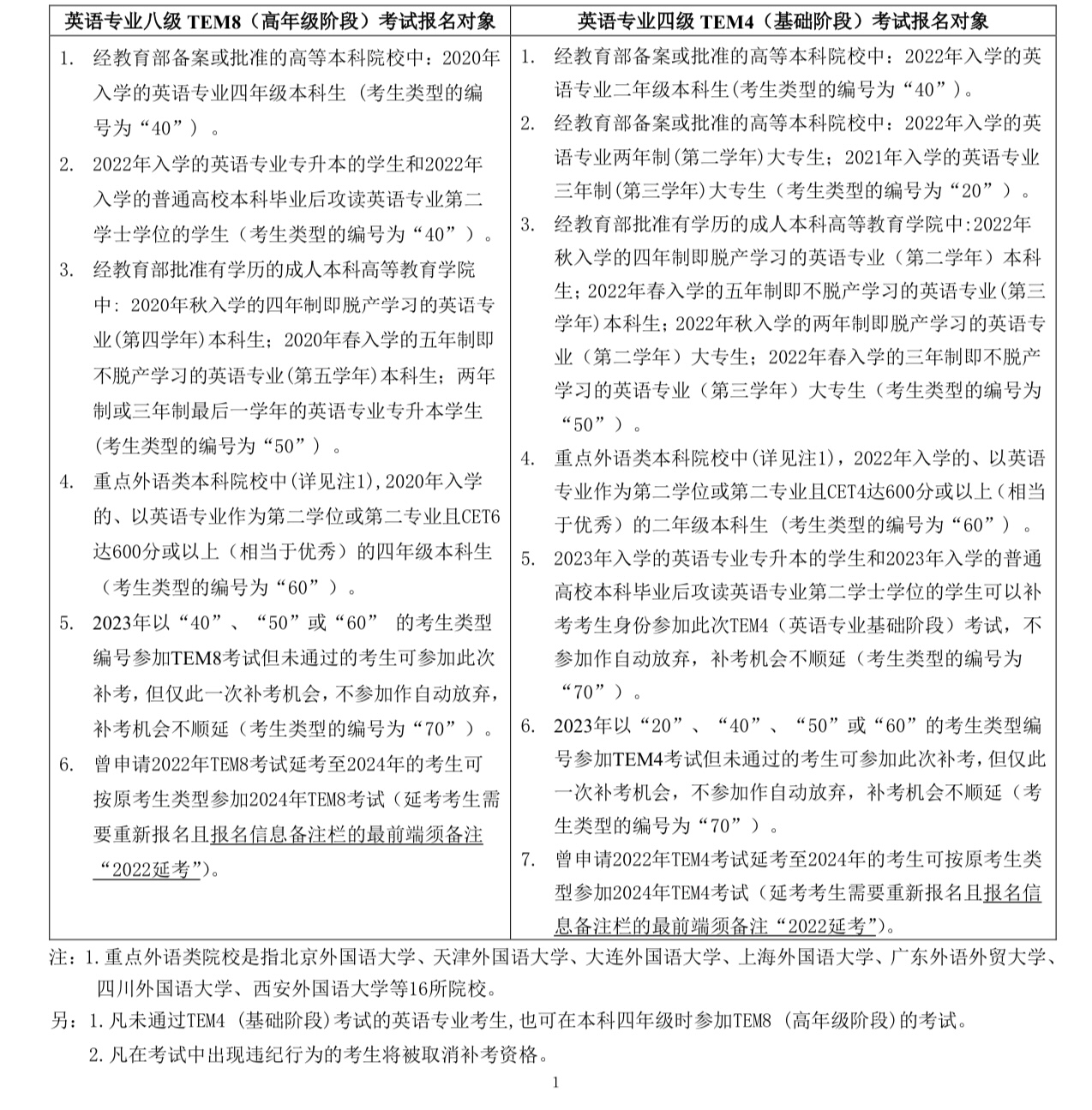 关于2024年全国高等公司英语专业四、八级考试 (TEM)报名事宜的通知