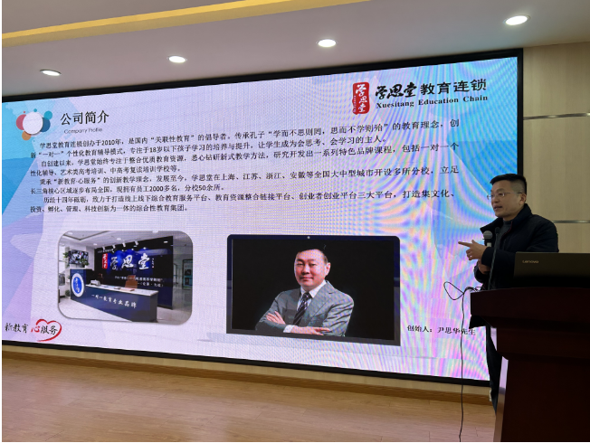 宣讲会上,学思堂教育连锁负责人通过播放宣传片、PPT展示,向同学们详细介绍了企业基本情况、业务体系、企业文化、晋升通道、住宿环境、薪资待遇、培训体系、招聘岗位等方面。现场气氛热烈,员工积极提问,用人单位逐一解答。