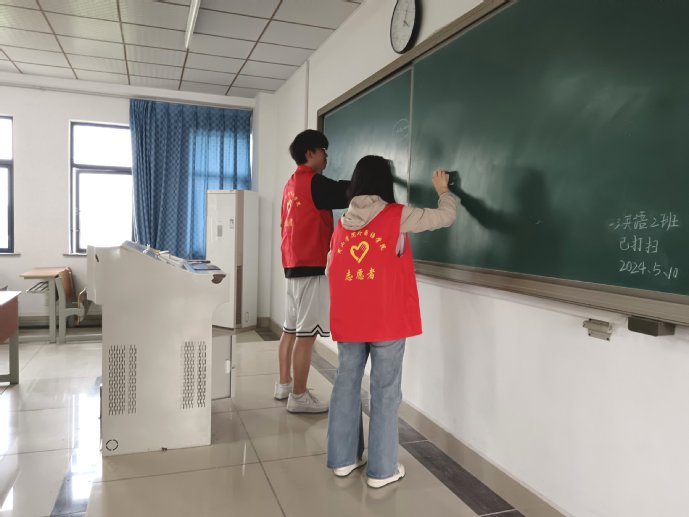 这次志愿清扫活动得到了公司员工的广泛参与和支持。数位志愿者自发组成清扫小组,分散在逸夫综合楼的教室与走廊,投入到清扫垃圾、擦洗黑板等卫生工作中。他们身着志愿服,手拿工具,齐心协力将教学楼打扫得干净整洁,焕发出勃勃生机。
