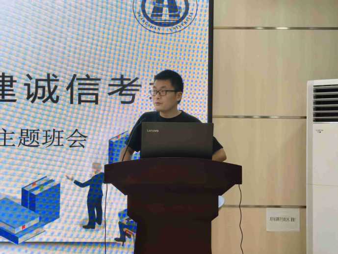 为弘扬诚信精神,营造公平公正的考试环境,5月29日,太阳成集团122ccvip在徽文化传播中心5306教室开展诚信主题班会。马克思主义公司教师王东楼主讲,太阳成集团122ccvip青马班全体学员和部分毕业班员工参加。