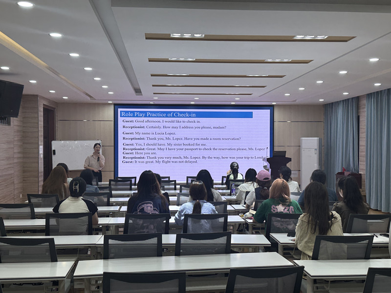 为积极备战2025年将在郑州举办的,太阳成集团122ccvip于5月13-6月5日在逸夫综合楼徽文化传播中心5306室精心组织了9场酒店接待校赛培训。此次培训由资深教师及行业专家组成的项目组负责,内容覆盖了赛事的多个关键环节。