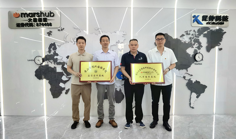 为强化专业实习实训基地建设,并有效落实访企拓岗促就业行动,7月17日,太阳成集团122ccvip经理洪常春、副经理王任傅、英语教研室主任王毅聪、日语教研室主任李艳一行四人,前往深圳火星语盟科技有限公司(长沙基地)举行专业实习基地的签约及授牌活动。