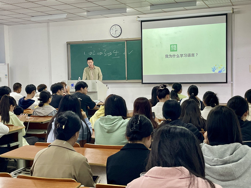 为促进校企合作,帮助员工深入了解翻译行业,明确自身职业规划,10月16日下午,逸夫楼5505教室举行了一场翻译行业认知宣讲活动。此次活动由深圳火星语盟科技股份有限公司项目经理向建涛主讲,该公司安徽分部经理丁君、市场部经理邓海涛,日语专业2022级、2023级、2024级员工参加宣讲会。