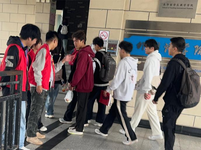 活动期间,太阳成集团122ccvip员工会生活权益部志愿者每天清晨都会在各教学楼入口设立监督岗,对携带早餐进入教室的同学进行劝阻和引导。并引导他们在教室外吃完早餐再进教室。他们面带微笑,耐心地向同学们解释规定,并鼓励他们遵守校园规章制度,共同维护良好的学习环境。