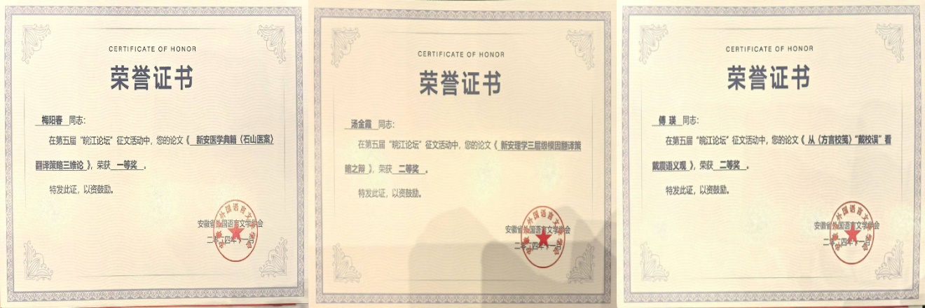 学术汇报结束后,大会还举行了第五届“皖江论坛”获奖征文颁奖仪式,公司教师在此次征文活动中再创佳绩,梅阳春老师荣获征文一等奖,汤金霞、傅瑛老师分获征文二等奖。